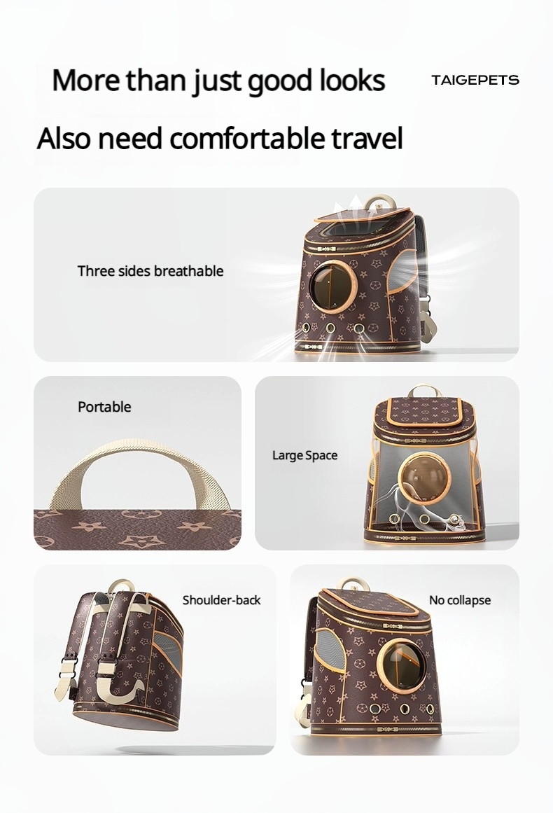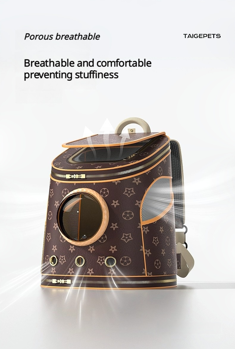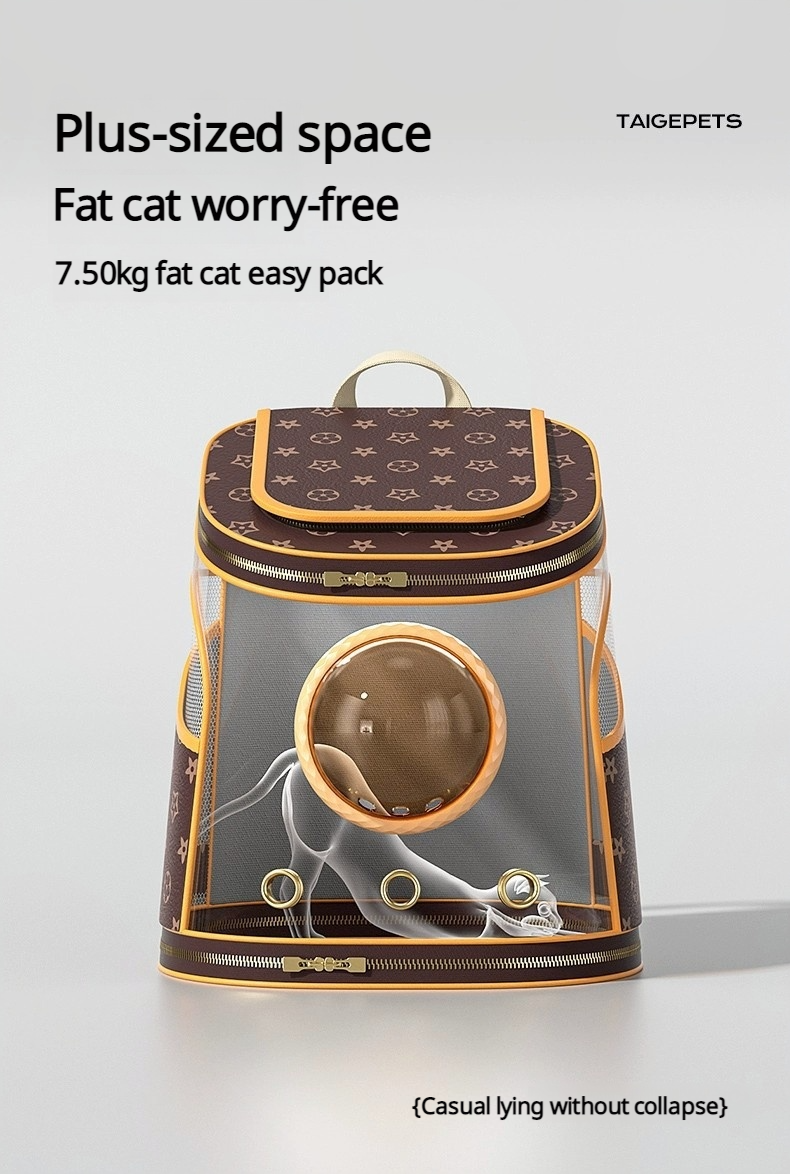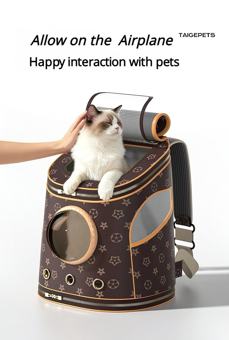 Luxury Leather Cat Backpack Carrier - 3-Side Ventilation, Spacious & Escape-Proof, Hands-Free Travel for Pets Up to 15lbs