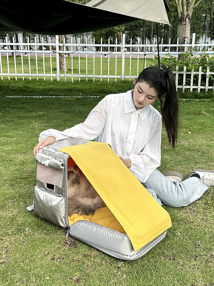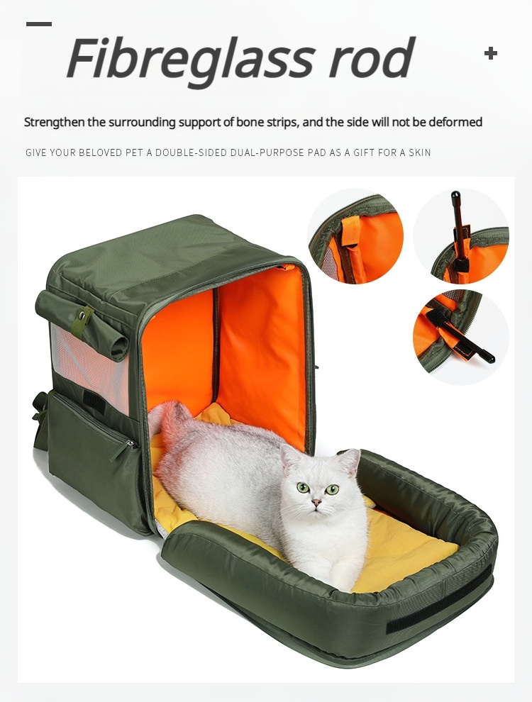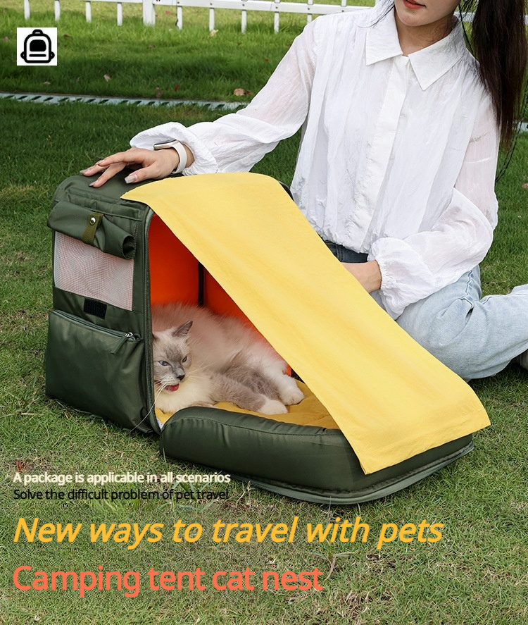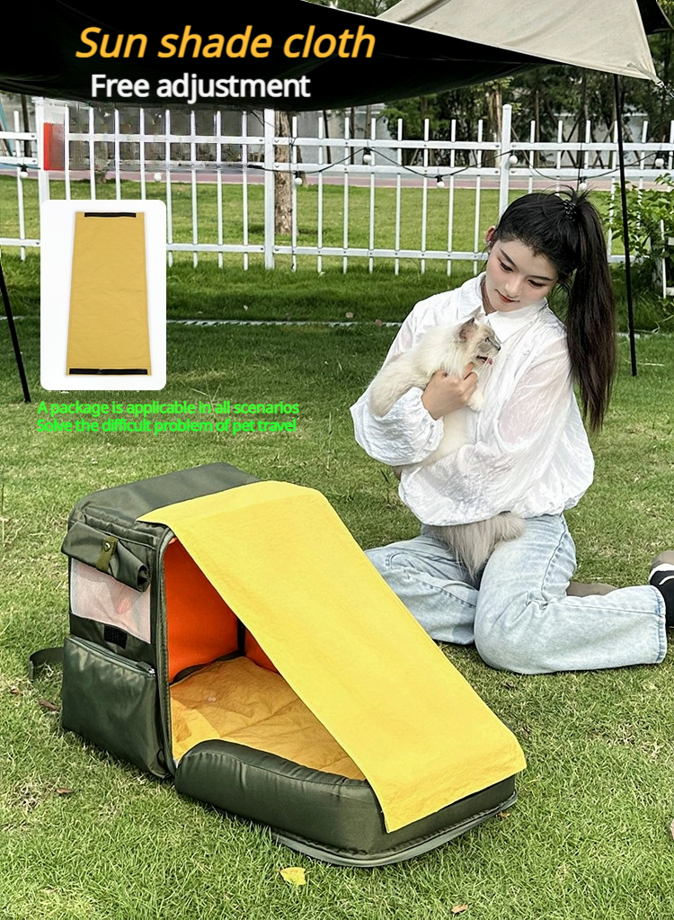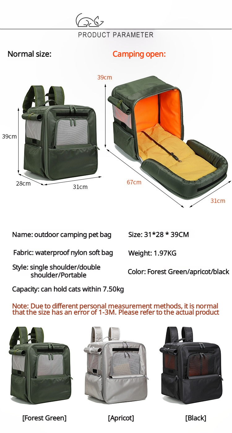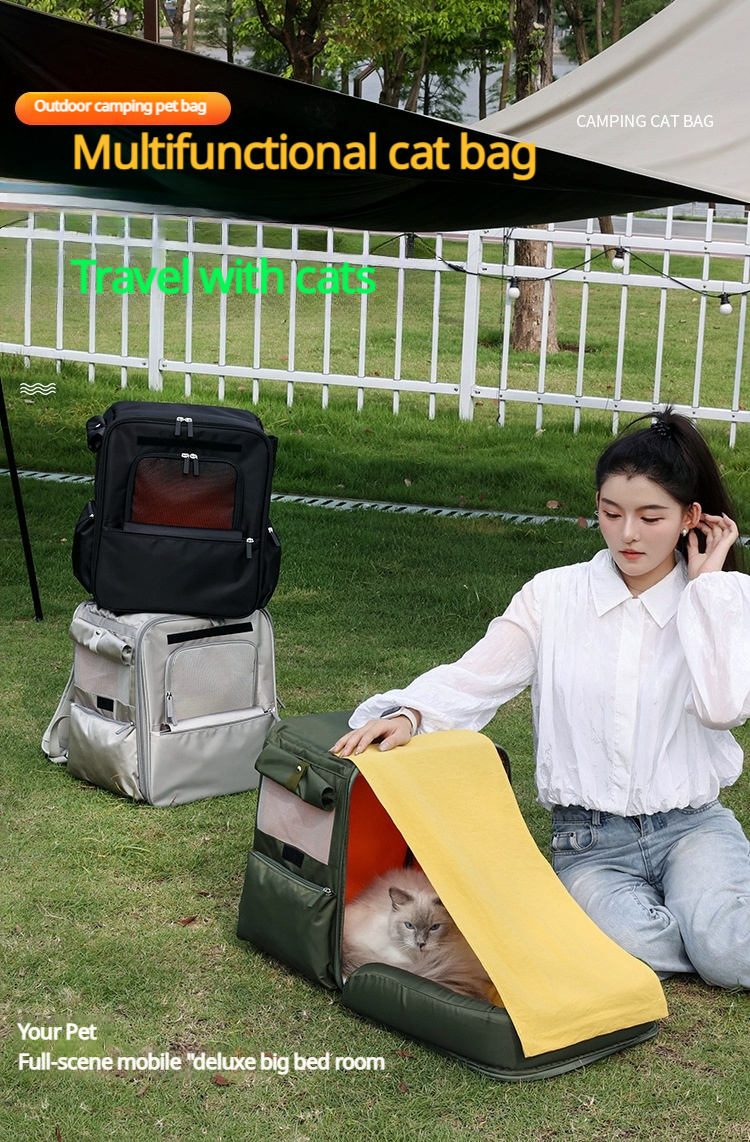 3-in-1 Expandable Cat Carrier Backpack – Foldable Pet Camping Bag with Sunshade, Breathable Mesh, Double Safety, Waterproof Nylon – for Travel, Hiking, Outdoor Adventures