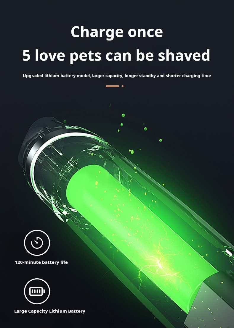 • Long Lasting Battery & LED Indication: 2200mA High Capacity Li-ion Battery, charging for 3 hours and can sustain use of 250 minutes.With LCD display,for reminding using and charging status,helping you better control the grooming work.Rechargeable design of this cat clipper, you don't have to buy replace batteries.