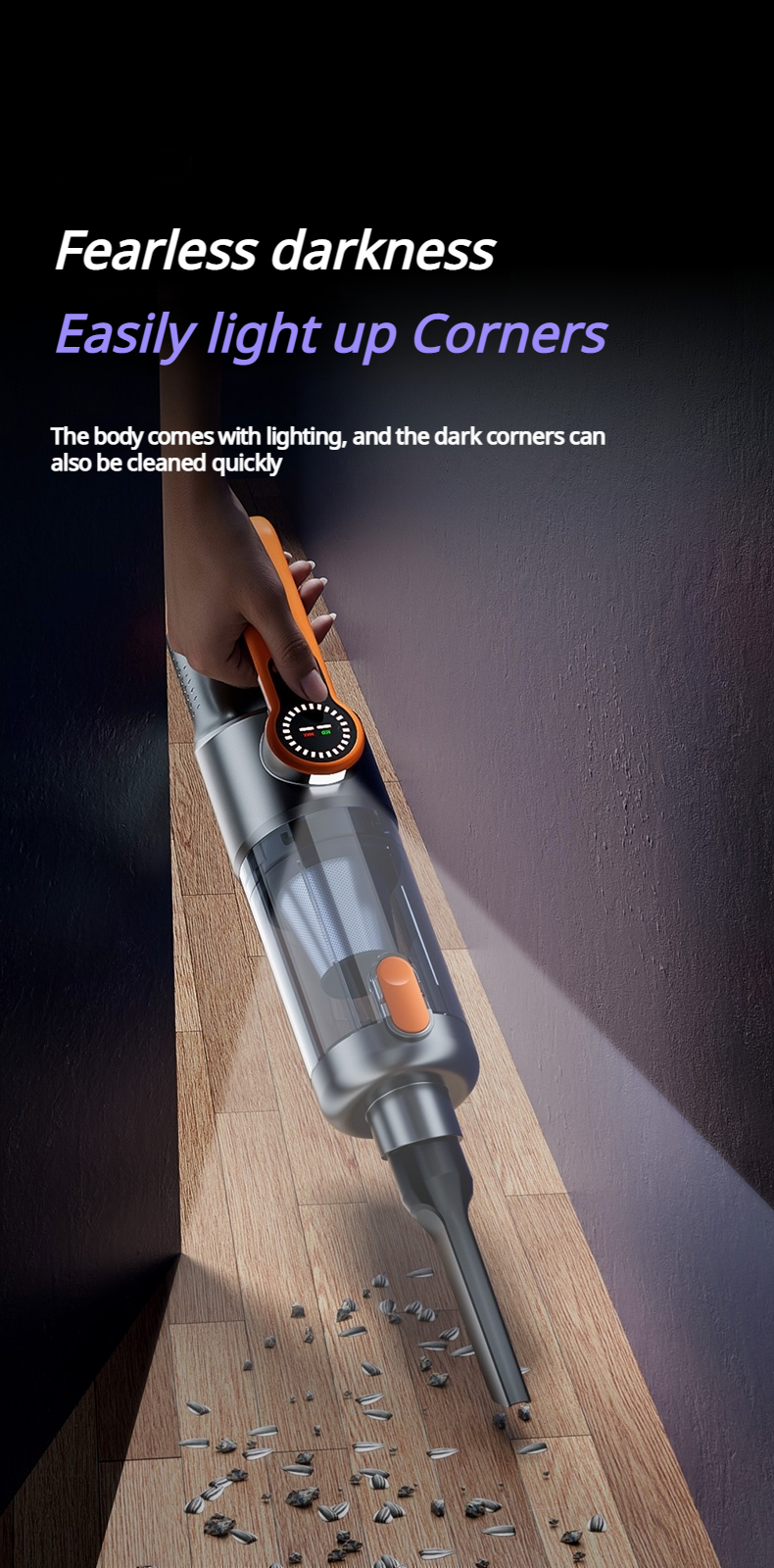 Cordless Handheld Vacuum Cleaner, 17000PA Strong Suction, 2-Stage Power, 5-in-1 Multi-Function (Suck/Blow/Charge/Brush/LED Light), Car & Home Use, with LCD Display