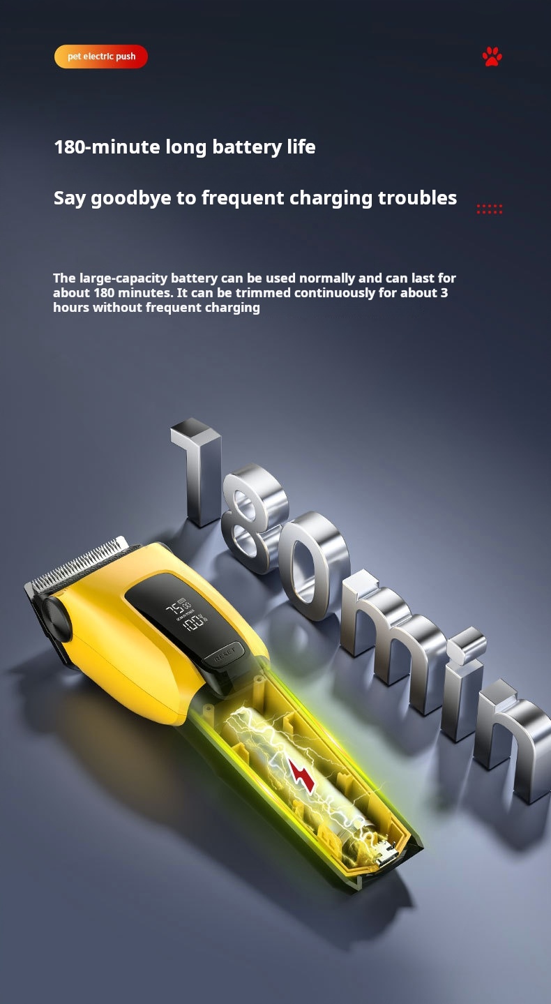 Professional Pet Clipper: 180-Min Cordless, Type-C Fast Charge, Wide Stainless Steel Blade for All Pets