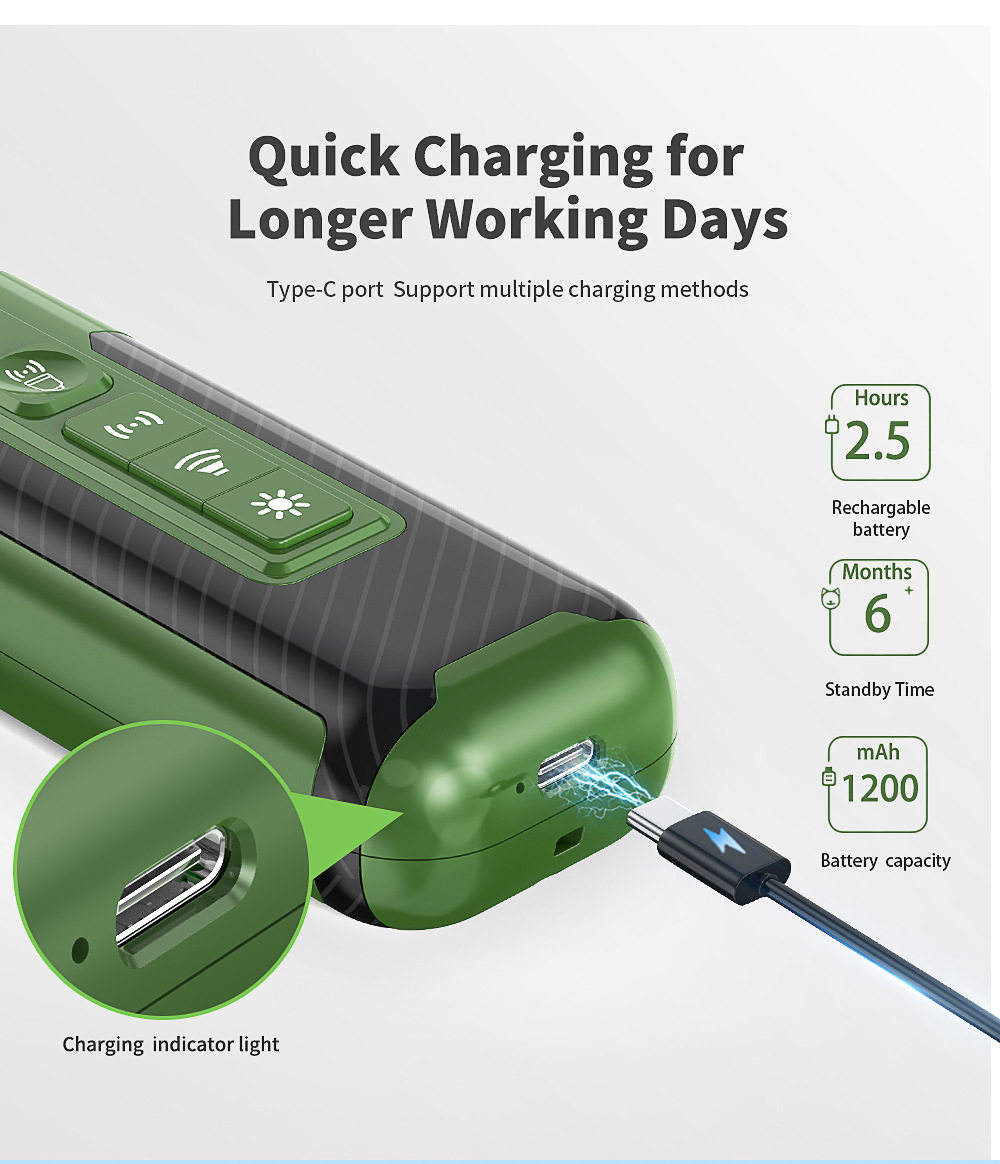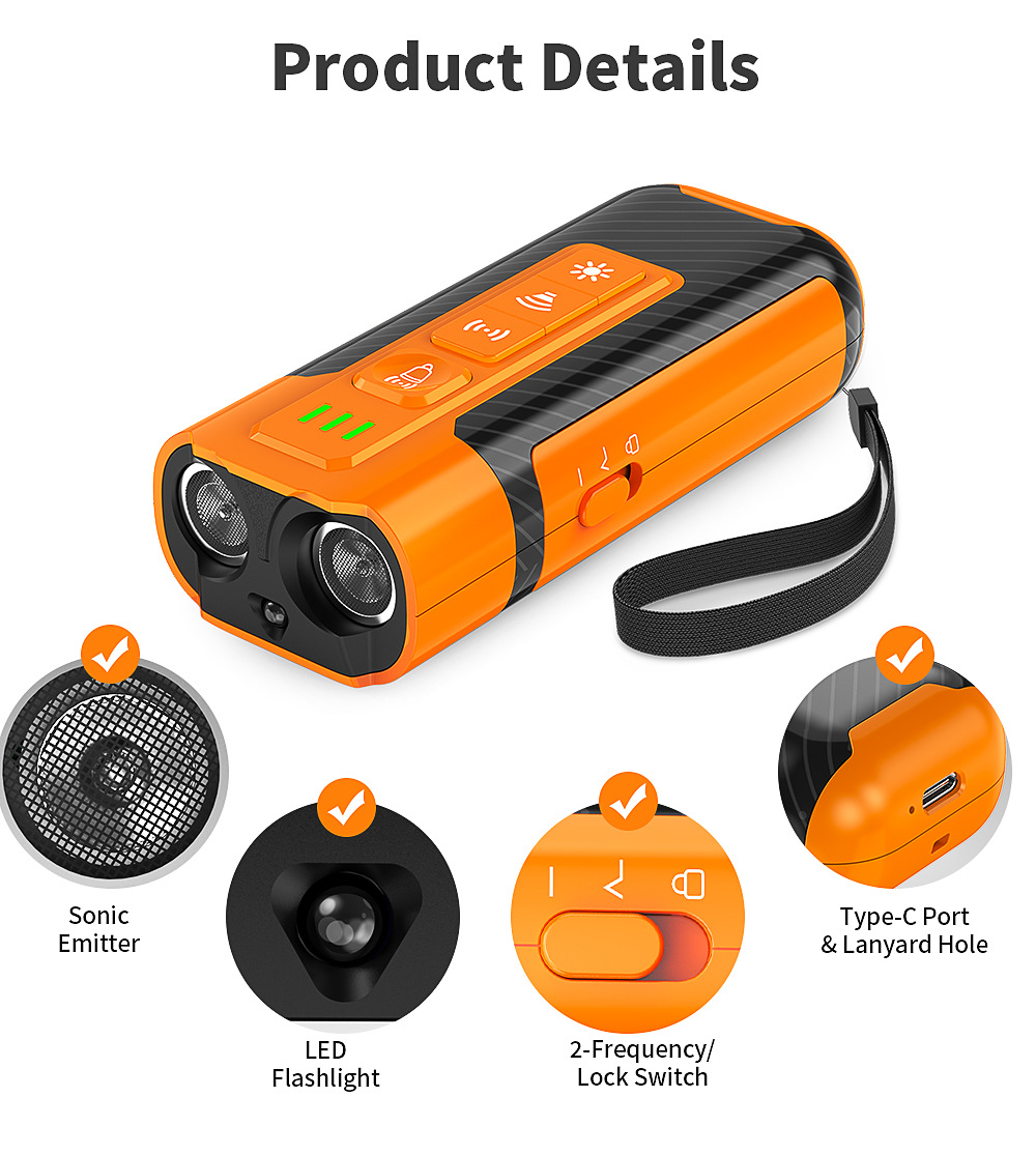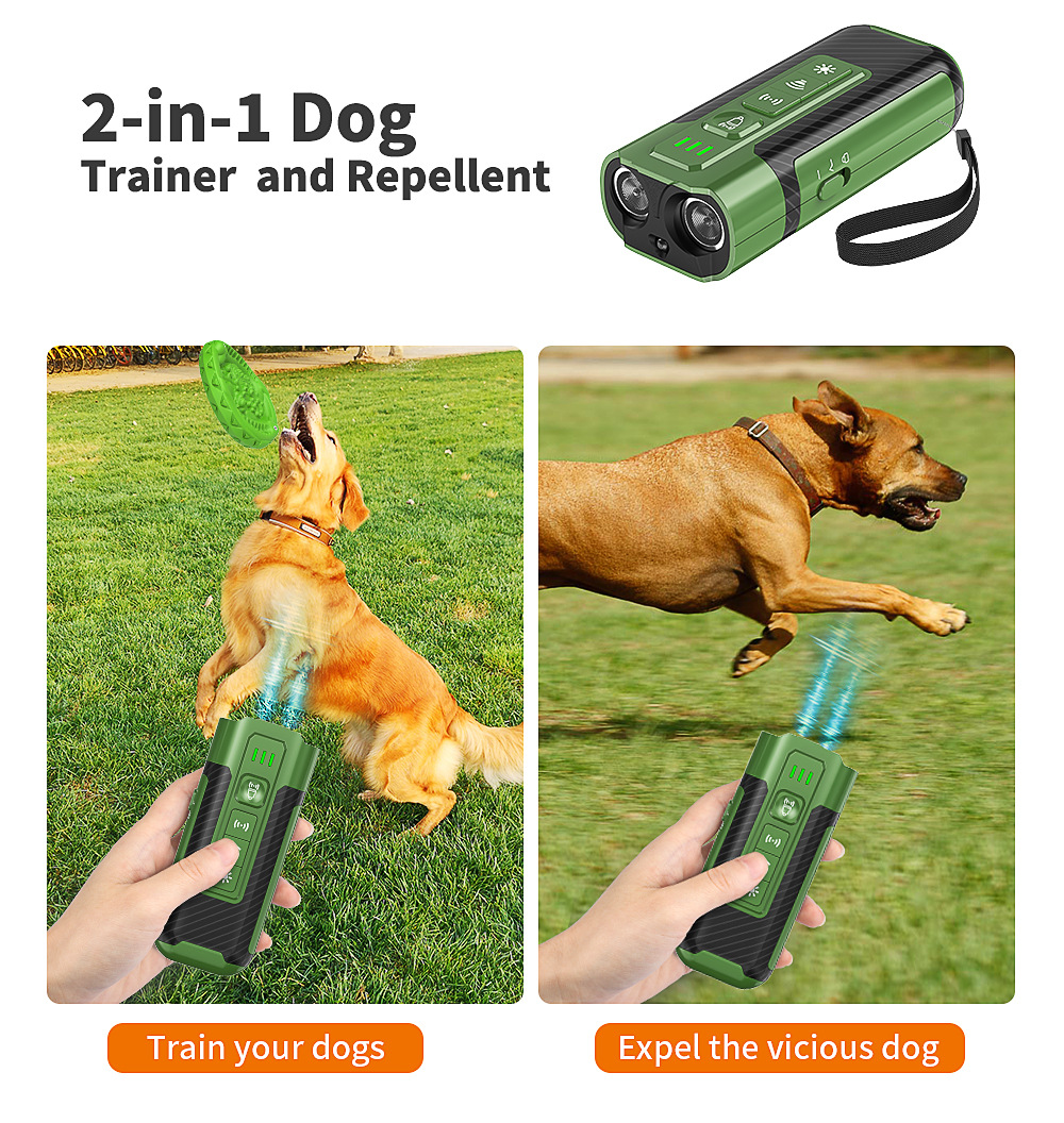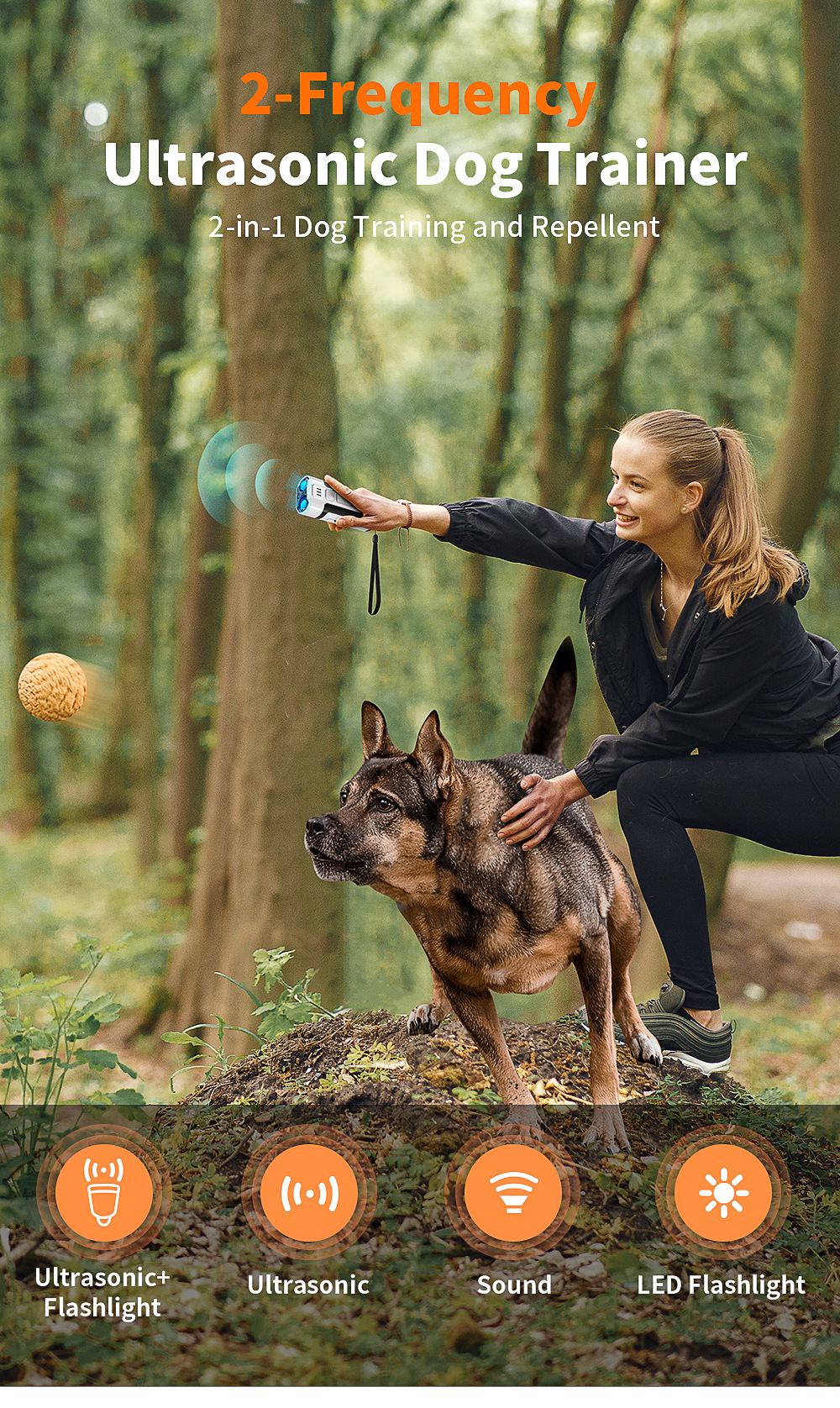 Dual-Frequency Ultrasonic Dog Trainer & Repellent - 2-in-1 LED Flashlight, Type-C Rechargeable, 23ft Range