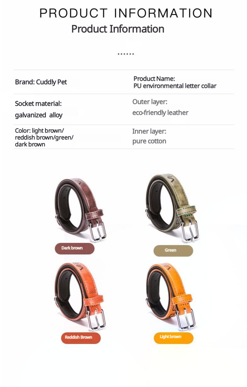 Eco-Friendly PU Letter Dog Collar – Breathable, Durable, Adjustable with Metal Buckle