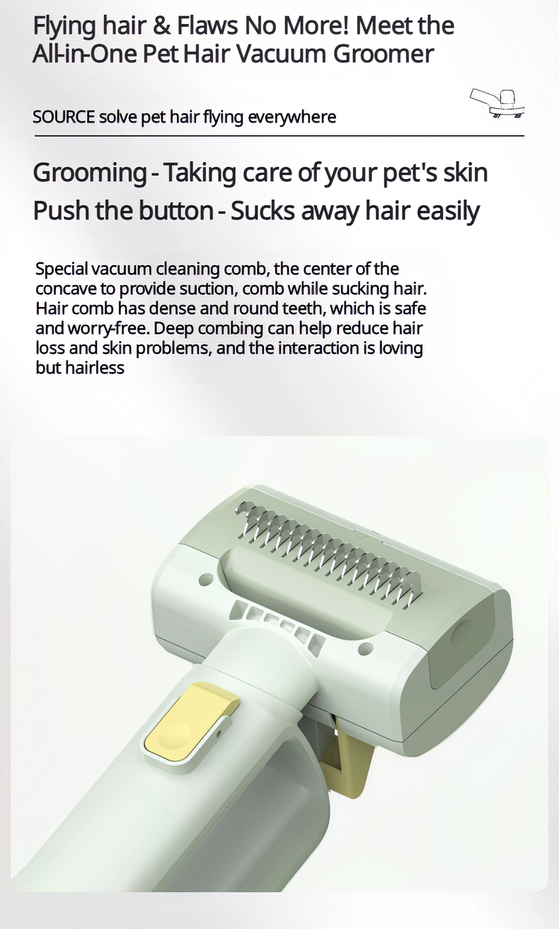 Pet hair vacuum groomer 2-in-1 Vacuum & Grooming Tool Portable & Cordless