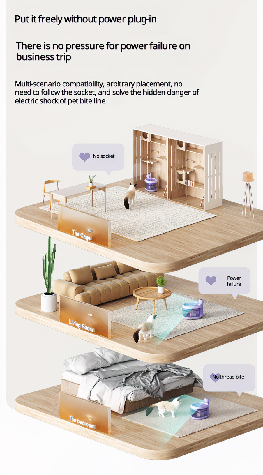 • Multi-scene compatible, placed as you like, no need to follow the socket, while solving the hidden danger of love pets biting the line