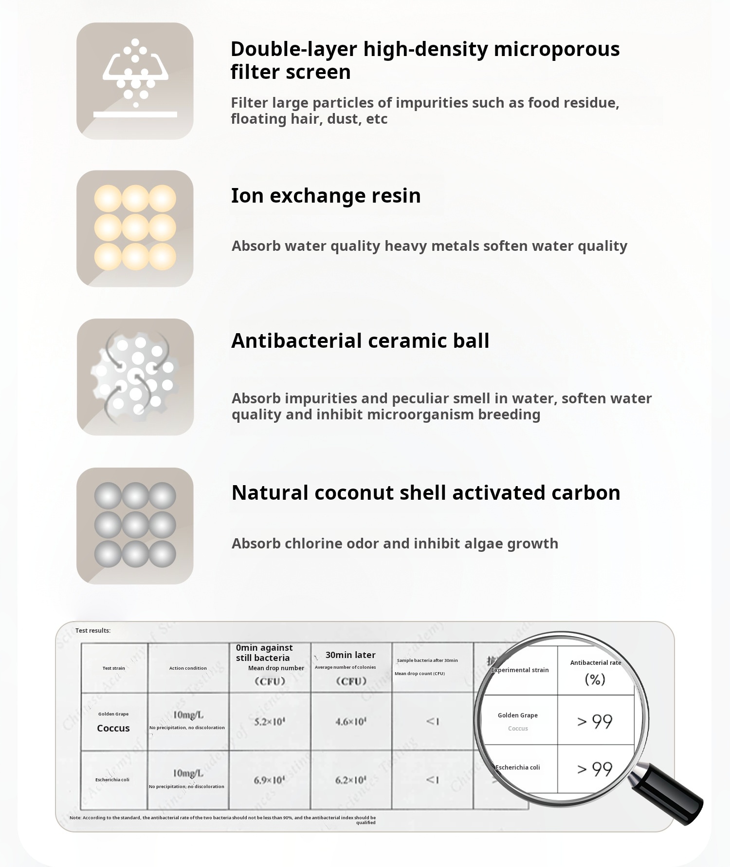 • Nano-silver ion cartridge, effective water filtration