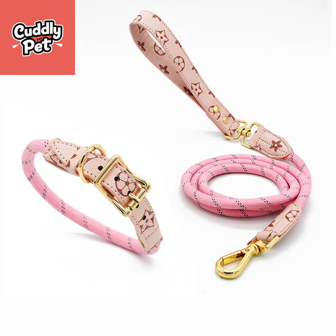 Premium Leather Pet Harness Set with Reflective Strips - Adjustable, Tangle-Proof & Comfortable for Small to Large Dogs