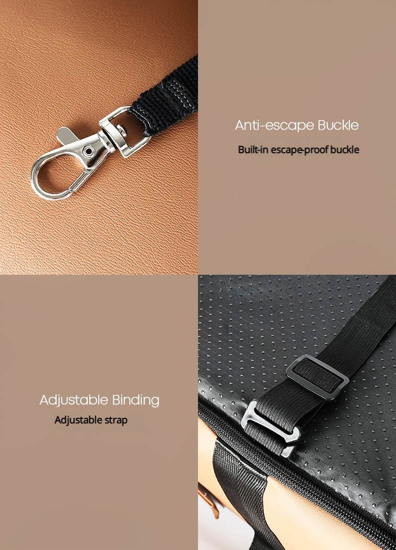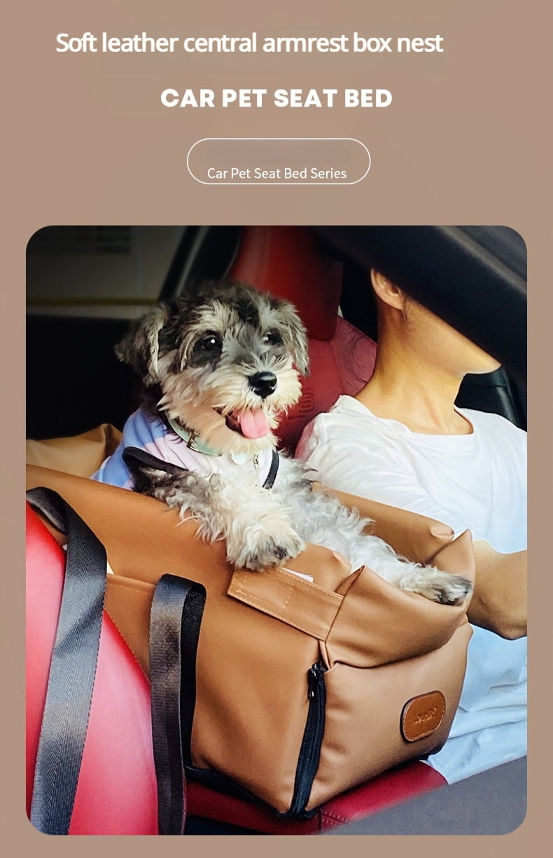 Waterproof Pet Car Seat Bed - Comfortable & Safe Leather Dog Car Bed with Anti-Escape Buckle, Adjustable Strap (Coffee, Orange, Black)